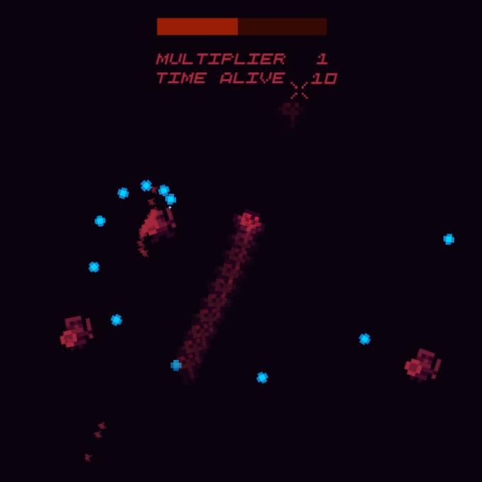 In this bullet-hell game, you are a vampire on the fight to make the biggest multiplier you can manage, whilst you balance the duality between health and attacking, movement and replenishing. Enjoy!